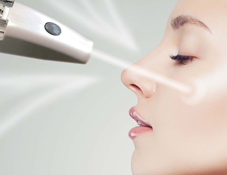 高圧エアによって霧状になった美容液を肌にしっかりと届けるエアインジェクションです。短期間での美しさ効果を実感いただけます。